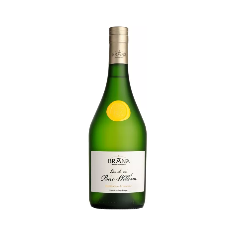 L'eau de Vie de Poire William collection les Traditionnelles du Domaine Brana est élaborée avec des poires ayant atteint leur degré de maturité. Les poires sont mises en fermentation en cuve inox avec contrôle des températures. Les poires William proviennent de vergers environnants. Cette proximité et les relations que la famille Brana entretient avec les arboriculteurs permettent une fine sélection des fruits mis en uvre. La distillation se fait dans un alambic de cuivre rouge à repasse. Ce procédé lent permet d'effectuer des contrôles réguliers favorable à la qualité de l'eau de vie. Cette Poire William du domaine Brana offre un nez très fin et très marqué par le fruit. L'attaque en bouche est nerveuse avec une impression au fur et à mesure de croquer dans le fruit. Cette Eau de Vie du Pays Basque s'avère intense et élégante. La finale est tout aussi séduisante.