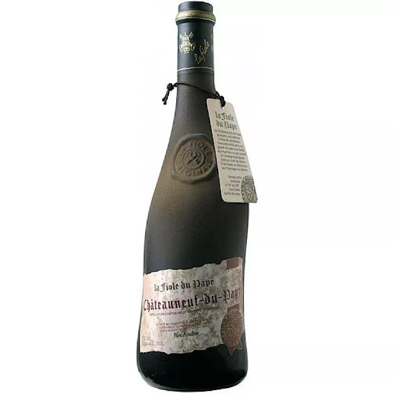 Cette cuvée chère à notre maison, et portant la signature Père Anselme, a été créée en 1952 par Charles Brotte, dans le cadre d’un concours local de créateurs céramistes provençaux. La forme originale et étonnante de sa bouteille rappelle le mouvement sauvage et typique du cep de vigne dans le Mistral. La Fiole, « Phiala » en latin, signifie notamment « flacon précieux ». Nous en possédons l’exclusivité. « Pape » évoque le cru de Châteauneuf-du-Pape ainsi que la présence des Papes dans la région et le village au Moyen Âge. Le poudrage doré anthracite de la bouteille rappelle les vins d’antan. Le vin est unique et de qualité constante. Une dominante de Grenache, et une part importante de vins de Réserve de la Maison – 30 à 40% (pour certains vieillis 5 ans) – lui confèrent fruité, fraîcheur et maturité, intensité et rondeur. Le vin peut être savouré immédiatement ou gardé 5 à 7 ans. Cette cuvée est aujourd’hui le Châteauneuf-du-Pape le plus vendu au monde. Service à 17 °C. À déguster avec un tartare de bœuf et ses petits légumes, du sanglier en sauce, une moussaka, un plateau de fromages bleus, ou un fondant au chocolat et son coulis de cerise.