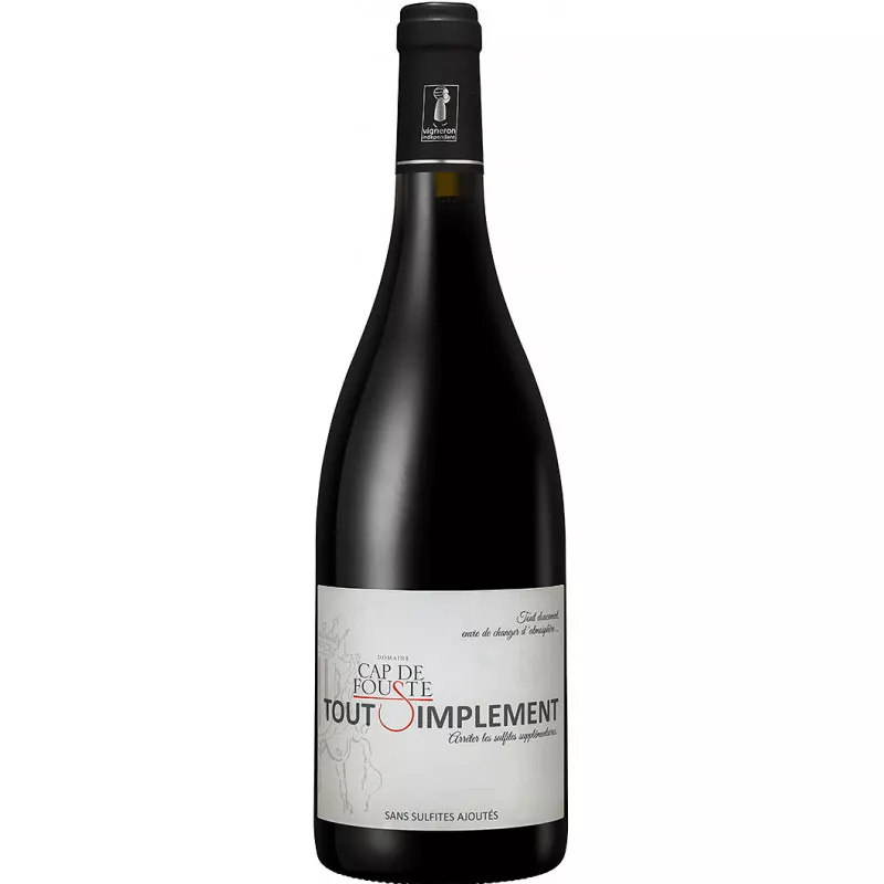 La cuvée Tout Simplement du Château Cap de Fouste est issue de vigne de Syrah et Marselan qui mûrissent sur des terrasses à galets. Ce vin rouge du Roussillon élaborée sans sulfites ajoutés est toute en rondeur, avec des arômes subtils de fruits rouges et noirs. Nous y trouvons également des notes d’épices comme le poivre. Cette cuvée souple, fruitée et gourmande est parfaite pour vos repas en famille autour d’un barbecue.
