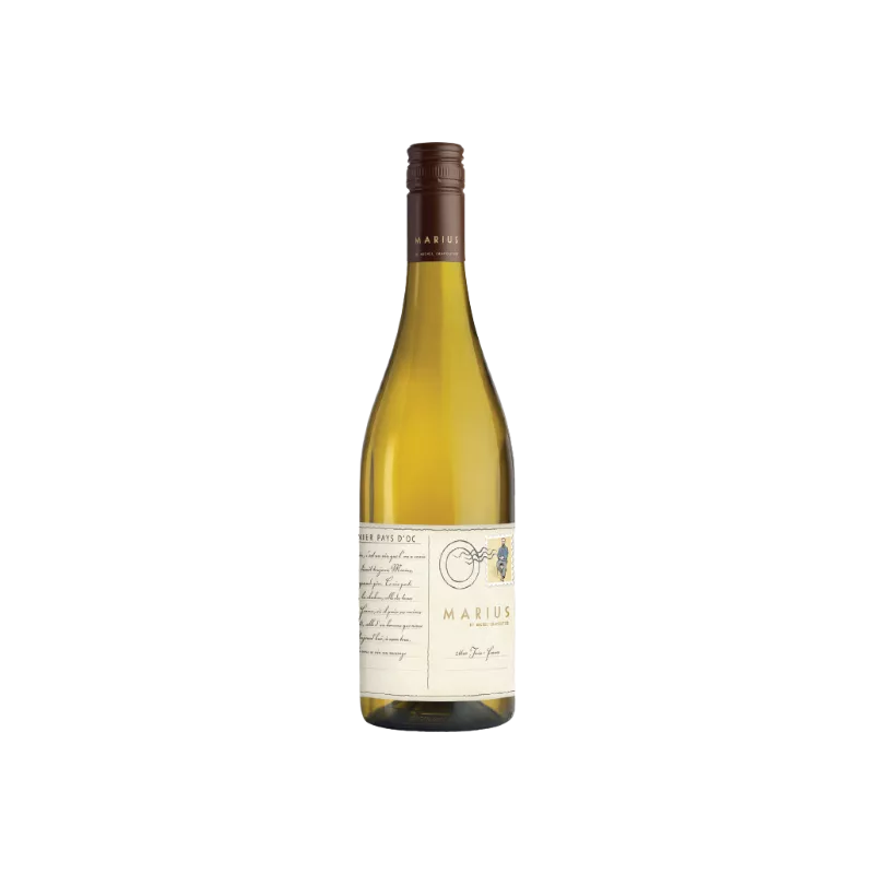 Les raisins Viognier de la cuvée Marius blanc proviennent de sols argilocalcaires et de terrasses caillouteuses. Ce vin de Pays d'Oc de Michel Chapoutier nous offre une robe jaune pale, avec des reflets or. Le nez est ouvert et expressif, avec des notes de fruits tel la poire et de fleurs blanches. Le Viognier Marius blanc possède une bouche suave, gourmande et équilibrée. C'est un vin avec une belle fraîcheur et de la persistance.