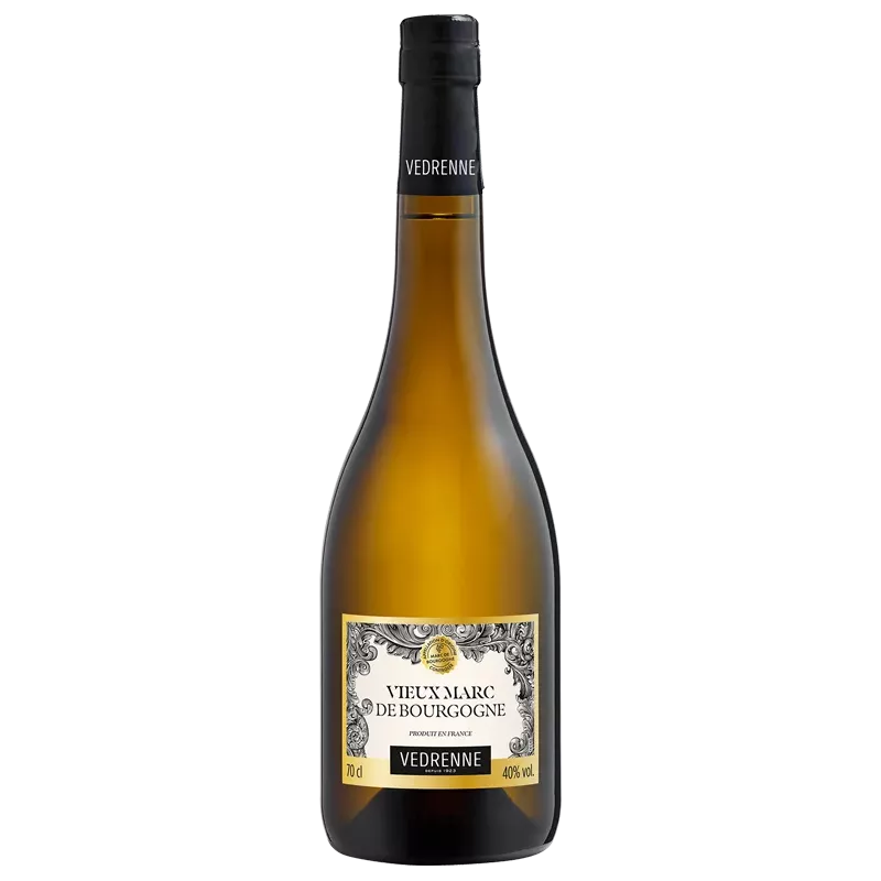 Le Vieux Marc de Bourgogne du Caveau de Vedrenne est un spiritueux authentique qui plonge dans la tradition viticole de la Bourgogne. Il ne s'agit pas d'une liqueur fruitée, mais d'une eau-de-vie puissante et complexe, issue de la distillation du marc de raisin. Un savoir-faire ancestral Le Marc de Bourgogne est le fruit de la distillation des résidus solides de la cuve après le pressurage du vin : peaux, pépins et rafles. Ce processus permet de capturer l'essence même du raisin et de son terroir. Vedrenne, maison établie à Nuits-Saint-Georges depuis 1923, a un savoir-faire reconnu dans ce domaine. Le terme "Vieux" signifie que cette eau-de-vie a vieilli au moins trois ans en fûts de chêne. C'est cette étape qui lui confère ses arômes et sa couleur ambrée caractéristique. Le Vieux Marc de Bourgogne du Caveau de Vedrenne présente une belle robe jaune-dorée à ambrée, qui témoigne de son passage en fût de chêne. Au nez, le bouquet est riche et complexe. On y retrouve des notes de bois, de fruits secs (raisins secs) et des arômes typiques du marc. En bouche, le Vieux Marc de Bourgogne est puissant, rond et chaleureux. Les arômes de fruits et de raisin se mêlent aux notes boisées et épicées acquises pendant le vieillissement. L'ensemble est équilibré et la finale est longue et persistante. Le Vieux Marc de Bourgogne est un excellent digestif à boire pur, à température ambiante ou légèrement rafraîchi. Il peut également s'utiliser pour : Le "pousse-café" : Traditionnellement, on en ajoute une petite quantité dans le fond d'une tasse de café pour un mélange puissant et aromatique.